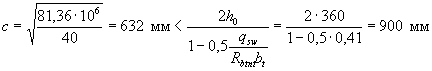 Площадь сечения арматуры в пролете As = 6Ø16 = 1206 мм2. Высота сжатой зоны (формула 5.9) при одиночном армировании