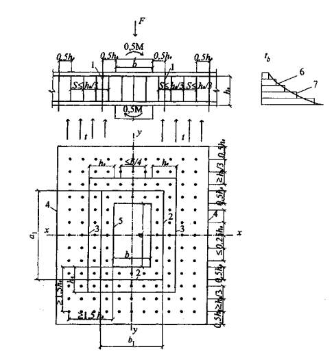 применении квадратных или прямоугольных в плане капителей с наклоном нижней