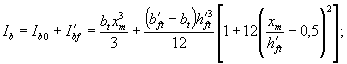 где Eb,red,t - по (7.30). Момент инерции Ired приведенного поперечного сечения элемента относительно его центра тяжести определяют по формуле (7.21) с учетом площади сжатой зоны, площадей сечения сжатой арматуры с коэффициентом приведения арматуры к бетону αs1, и растянутой арматуры с коэффициентом приведения арматуры к бетону αs2 Ired = Ib + I'bαs1 + Ibαs2. (7.21) Момент инерции площади сечения сжатого бетона Ib определяют а) при действии только изгибаемого момента М: для элементов прямоугольного поперечного сечения Ib = bxm3/3; (7.22) для элементов таврового со сжатой полкой и двутаврового поперечных сечений с нулевой линией, расположенной в ребре ниже сжатой полки (хт > h'ft) по формуле