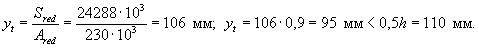 действительному сечению. При высоте плиты 220 мм середина сечения находится на