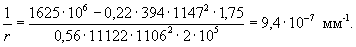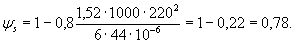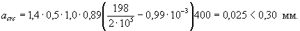 Ширина раскрытия трещин по (7.1) при φ1 = 1,4, φ2 = 0,5, φ3 = 1,0 и ψs = 0,78 равна