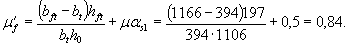 Из табл. 7.3 при μαs1 = 0,5 и μ'f =0,84 находим φ1 = 0,56, а из табл. 7.4 при μαs1 = 0,5 и μ'f = 0,84 и μf = 0 находим соответствующий продолжительному действию нагрузки коэффициент φ2 = 0,22 тогда по (7.33)