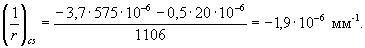При остывании балки возникает кривизна от неравномерной усадки бетона по высоте сечения. Значение коэффициента температурной усадки тяжелого бетона на силикатном заполнителе принимаем по табл. 2.5. При температуре холодной грани 20 °С αcs = 0,5·10-6 °С-1. Температуру бетона нагреваемой грани при пожаре согласно п. 5.27 принимаем 575 °С αcs = -3,8·10-6 °С-1. Знак «минус» свидетельствует о том, что при остывании на нагреваемой поверхности останутся деформации расширения и температурная кривизна от усадки бетона должна суммироваться с кривизной от нагрузки согласно (7.39).