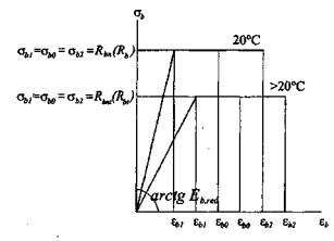 Относительные деформации бетона принимают для наименее нагретого сжатого волокна бетона, так как при неравномерном нагреве сжатого бетона разрушение его происходит по наиболее прочному менее нагретому бетону. 8.3. При двухлинейной диаграмме сжимающие напряжения бетона σb в зависимости от относительных деформаций εb определяют по формулам: