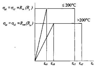 Рис. 8.2. Диаграмма деформирования арматуры при расчете огнестойкости и огнесохранности 8.2. Относительные деформации бетона сжатию при однозначной равномерной эпюре εb0 и при двухзначной эпюре в нормальном сечении εb2 в зависимости от длительности действия нагрузки и расчета на огнестойкость и огнесохранность принимают по табл. 8.1.