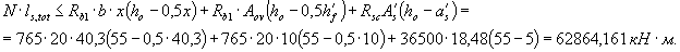 Sred = bbl·hmon·0,5(h - hmon) + λ·As,mon·- as,mon = 30·10·0,5(50 - 10) + 8,7·15,2·21 = 8777 см3;