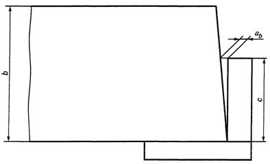 Рисунок 1 - Измерения отклонения от прямоугольности подлине, ширине и толщине (см. также рисунки 2 и 3) b - длина или ширина изделия в зависимости от угла, по которому проводят измерение, аb - отклонение от прямоугольности по длине или ширине, с - длина внутренней измерительной грани угольника Рисунок 2 - Измерения отклонения от прямоугольности подлине и ширине