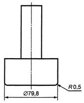 1 - соединение индентора с испытательной машиной; 2 - индентор; 3 - образец для испытания; 4 - опорная плита Рисунок 1 - Устройство для испытания 5.1.2 Стальной цилиндрический индентор диаметром (79,8 ±0,1) мм, соединенный с вертикально движущейся или фиксированной опорной плитой (см. рисунки 2 и 3). Если это целесообразно, индентор соединяют с испытательной машиной через центрально расположенный шаровой шарнир, создавая строго осевое направление силы, действующей на конкретный участок образца. Скорость перемещения индентора или подвижной опорной плиты должна быть постоянной в соответствии с 7.2.
