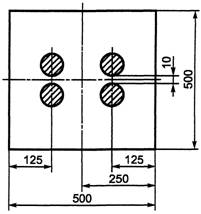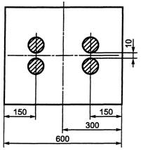 Рисунок 3 - Цилиндрический индентор 5.2 Измерение смещенияПрибор для измерения смещения, соединенный с испытательной машиной, обеспечивающий непрерывное измерение смещения индентора или подвижной плиты и позволяющий снимать показания с погрешностью ± 5 % или ± 5.3 Измерение силыДатчик для измерения силы, действующей на испытуемый образец, соединенный с опорной плитой испытательной машины или индентором. Датчик должен иметь такую конструкцию, чтобы при измерении его собственная деформация была пренебрежимо мала по сравнению с деформацией участка образца, в противном случае деформацию датчика следует учитывать при вычислении результатов. Датчик должен обеспечивать непрерывное измерение силы с погрешностью ± 1 %. 5.4 Записывающее устройствоУстройство, записывающее одновременно значение силы F и деформации Х и построение кривой зависимости F(X) (см. 7.2). 6 Образцы для испытания6.1 Размеры образцовТолщина испытуемых образцов должна быть равна толщине изделия, из которого они вырезаны. При испытании образцов, вырезанных из изделий с обкладками, облицовками и/или покрытиями, эти обкладки, облицовки и/или покрытия следует сохранить. Образцы следует вырезать с поперечным сечением в форме квадрата с размерами сторон 300 Примечание - В стандарте на конкретное изделие могут быть предусмотрены другие размеры образцов; в конкретных случаях эти размеры могут быть согласованы между заинтересованными сторонами. Размеры образцов определяют в соответствии с ЕН