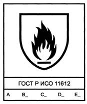 Примечания 1 Испытание, проводимое в соответствии с ИСО 9185, заканчивают, когда в ходе четырех последовательно проведенных испытаний на новых образцах с использованием одинаковой массы расплавленного металла не выявлено разрушение покрытия из поливинилхлорида (ПВХ). Следовательно, чтобы убедиться в соответствии используемого материала требованиям настоящего стандарта в отношении определенного сорта металла, вполне достаточно провести четыре испытания с применением этого металла по соответствующему заданному нижнему предельному значению и получить результаты, свидетельствующие об отсутствии повреждений покрытия ПВХ во всех четырех испытаниях. 2 Приемлемые характеристики, полученные в ходе испытаний в соответствии с ИСО 9185 с использованием расплавленного алюминия, обычно служат основанием для заключения о пригодности материала для защиты от расплавленной алюминиевой бронзы и расплавленных минералов. 3 Приемлемые характеристики, полученные в ходе испытаний в соответствии с ИСО 9185 с использованием расплавленного железа, обычно служат основанием для заключения о пригодности материала для защиты от расплавленной меди, фосфорной бронзы и латуни. 7 Дополнительные требования к одеждеОдежда, предназначенная для защиты от выплесков расплавленного металла, должна обладать следующими конструктивными особенностями: a) куртка должна быть достаточно длинной, чтобы прикрывать верхнюю часть брюк, даже когда рабочий наклоняется; b) брюки должны быть достаточно широкими и длинными, с напуском, чтобы закрывать верх обуви, при этом не должно быть отворотов; c) наружные карманы куртки или комбинезона, в тех случаях, когда они предусмотрены, должны иметь клапаны, ширина которых не менее чем на d) швы внахлест на внешней стороне одежды должны быть размещены вниз и прострочены оверлоком; e) во избежание прилипания расплавленного металла любые металлические застежки снаружи одежды должны быть закрыты или соответствующим образом обработаны; f) должны быть предусмотрены быстроразъемные крепления для того, чтобы быстро снять одежду в случае опасности; g) должна быть предусмотрена усиленная защита в области промежности, плеч и шеи. 8 МаркировкаМаркировка одежды, отвечающей требованиям настоящего стандарта, должна быть полной, четкой, точной и содержать следующую информацию: - название, торговую марку или другую информацию, идентифицирующую изготовителя; - обозначение типа, торговое название или код для четкой идентификации; - обозначение размера в соответствии с ИСО 13688; - пиктограмму (рисунок 1) с обозначением настоящего стандарта и эксплуатационными уровнями для характеристики А (ограниченное распространение пламени) и, по крайней мере, для одной из других характеристик от В до Е.