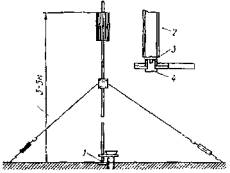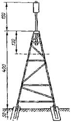 Размеры даны в см Примечание. Конструкция пирамиды-штатива универсальна. На скальных грунтах бетонные монолиты заменяются якорем состоящим из стальной плиты (200´200´4 мм), скрепленной болтами с ногой знака. Сверху насыпается курган из камней. При наблюдении визирная цель снимается. При необходимости визирная цель может быть поднята на высоту 3,5; 7,0; 10,5 м от столика