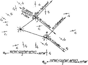Рис. 18 Засечки Определение координат съемочной сети триангуляционными построениями