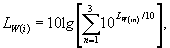 где LWAT(n) - корректированный по А уровень звуковой мощности с поправкой на тональность i-й третьоктавной полосы, дБA;