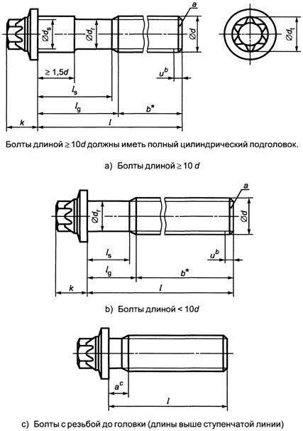 фланцем, полным цилиндрическим стержнем (форма С), резьбой М10, номинальной длиной l = Болт со звездообразной головкой С М10´110 - 8.8 ГОСТ Р 52855-2007 То же, с уменьшенным цилиндрическим стержнем (форма В), резьбой М10, номинальной длиной l =