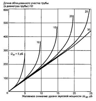 ΔLW - желаемое снижение уровня звуковой мощности, дБ, равное ΔLW = LW,with - LW,without, где Lwith - уровень звуковой мощности облицованной трубы, Lwithout - уровень звуковой мощности необлицованной трубы;