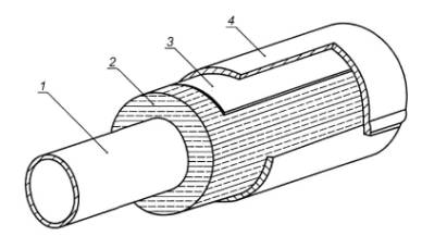 1 - труба; 2 - пористое покрытие; 3 - дополнительная масса и/или демпфирующее покрытие; 4 - обшивка