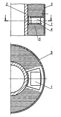 1 - перфорированный лист; 2 - пористый слой; 3 - направляющий буртик съемной части акустического ограждения; 4 - конструкция, поддерживающая фланцевое соединение (с виброизолирующей подушкой); 5 - виброакустическая изоляция
