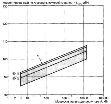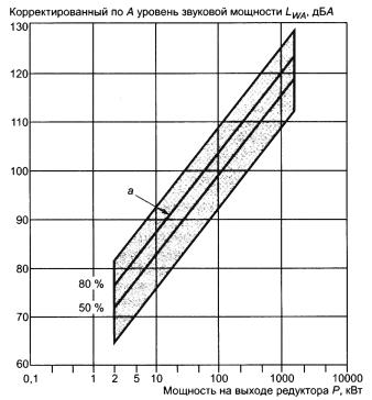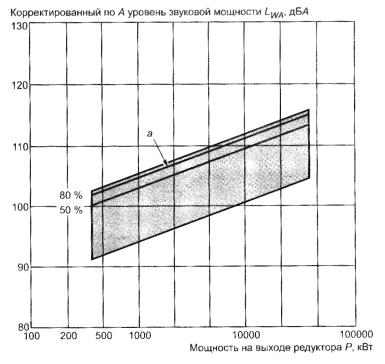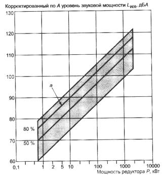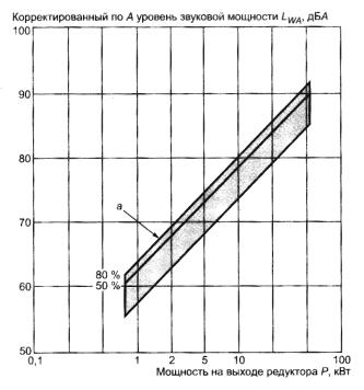 Рисунок В.8 - Корректированные по А уровни звуковой мощности цилиндрических редукторов общемашиностроительного применения