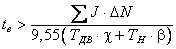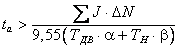 где ta, SJ - суммарный момент инерции, кг·м2, SGD2 - суммарный эффект маховика, кгс·м2, DN - изменение числа оборотов (об/мин) за период времени ta, ТДВ - номинальный крутящий момент двигателя (Н·м) или ТН - момент нагрузки (Н·м) или a - коэффициент коррекции момента при управлении от преобразователя частоты (1,2¸1,3), (b - корректирующий коэффициент, учитывающий уменьшенный крутящий момент двигателя (13, для постоянного момента 1). Проверка времени замедления