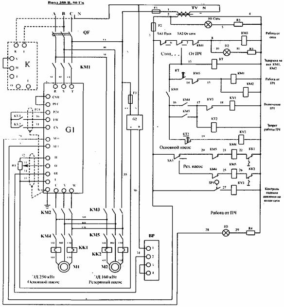 2. Параметры блока питания датчика давления G2 определяются требованиями для датчика МТ 100Р с сигналом 0¸10 В, задаваемые цифровым оператором преобразователя частоты (ПЧ), токовым сигналом 4¸20 мА или Контроллером.