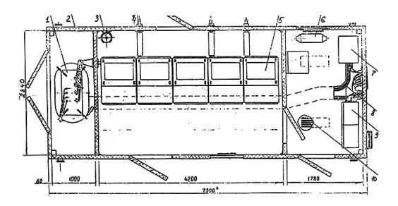На рис. 2 приведена схема размещения основного оборудования электростанции в блок-контейнере.