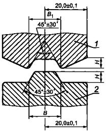 1 - муфта с выемкой; 2 - муфта с выступом Рисунок 4 - Комплект муфт для рилевания образцов Размеры комплектов муфт для рилевания образцов должны соответствовать указанным в таблице 5. Таблица 5