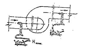 Рис. 5 Схемы присоединения пневмометрической трубки к микроманометру при определении напора, развиваемого вентилятором.