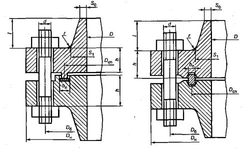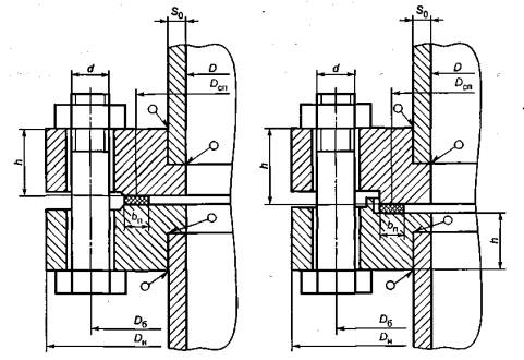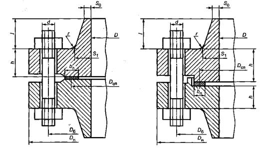 - для приварных встык фланцев с конической втулкой в сечении S0, приварных встык фланцев с прямой втулкой, плоских фланцев и свободных фланцев: