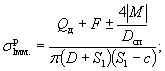 10.1.6 Размах условных упругих напряжений на наружной и внутренней поверхности втулки приварных встык фланцев с прямой втулкой, плоских фланцев и бурта свободных фланцев в сечении S0 в рабочих условиях вычисляют по формулам: - меридиональное напряжение: