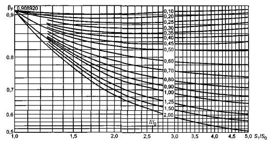 Коэффициенты βF, βv и f, зависящие от соотношения размеров втулки фланца, для фланцевых соединений с приварными встык фланцами с конической втулкой определяют по графикам, приведенным на рисунках К.2 - К.4, в зависимости от отношений: