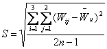 где Wa - значение влажности, приведенное в паспорте на ГСО или измеренное на рабочем эталоне 1-го разряда. 7.8 Определение среднеквадратичного отклонения результатов измерений Среднеквадратичное отклонение результата измерений влажности S, %, определяют по формуле