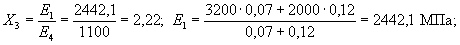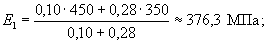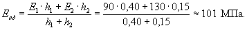 средневзвешенный модуль деформации двухслойной системы:
