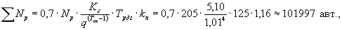 Расчетная интенсивность движения - 500 авт. за
