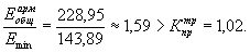 Еэкв ≈ 40,25 > Етр = 36 МПа.