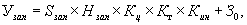 Кц - коэффициент средоохранной ценности почвенного покрова для городской среды, установлен с учетом средоохранной и средовоспроизводящей способности почвенного покрова, определяется в соответствии с пунктом 3.5. настоящей Методики; Кин - коэффициент индексации, определяется исходя из уровня инфляции, установленного основными социально-экономическими показателями развития г. Москвы на соответствующий год и применяется к базисному периоду установления такс; З0 - затраты на проведение оценки вреда, причиненного окружающей среде в результате загрязнения городских почв, определяются по фактическим затратам и включают затраты согласно пункту 3.6. настоящей Методики, руб. 3.3. Объем загрязненного почвенного слоя определяется по формуле (2): где: Vзагр - объем загрязненного почвенного слоя, м3; Sзагр - площадь загрязненного контура (м2) определяется согласно пункту 3.1.1. настоящей Методики; Hзагр - глубина загрязнения с превышением нормативных значений загрязняющих химических веществ (м) определяется согласно пункту 3.1.1. настоящей Методики. 3.4. Суммарный показатель загрязнения почв химическими, биологическими и иными загрязняющими веществами является безразмерным и определяется как сумма превышений накапливающихся в почвенном покрове конкретных загрязняющих химических, биологических и иных загрязняющих веществ над их предельно допустимыми (или ориентировочно допустимыми) значениями по формуле (3): где:
