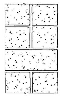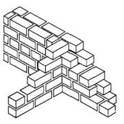 6.2. Общие положения по конструированию и применению стен из мелких блоков6.2.1. Настоящий СТО распространяется на применение стеновых мелких блоков из ячеистых бетонов автоклавного и неавтоклавного твердения марки по плотности не менее D500 в жилых и общественных зданиях на территории Российской Федерации. 6.2.2. Проектирование стен из блоков следует выполнять по СНиП II-22, по Пособию к СНиП 2.03.01 [4] и настоящему СТО. 6.2.3. Блоки стеновые мелкие из автоклавных и неавтоклавных ячеистых бетонов предназначены для кладки наружных и внутренних стен (в т.ч. перегородок) жилых и общественных зданий с относительной влажностью воздуха помещений не более 75 % при неагрессивной среде. 6.2.4. Применение блоков из негидрофобизированных ячеистых бетонов для кладки стен с мокрым режимом помещений, а также в местах, где возможно усиленное увлажнение бетона или наличие агрессивных сред, без специальной защиты не допускается. 6.2.5. Расчет элементов стен из блоков по предельным состояниям первой и второй группы следует производить в соответствии с требованиями СНиП II-22 или настоящих СТО; стены могут быть несущими и самонесущими. 6.2.6. Допустимую высоту (этажность) стен из блоков рекомендуется определять расчетом несущей способности наружных и внутренних стен с учетом их совместной работы. 6.2.7. Несущие стены из автоклавных ячеистобетонных блоков рекомендуется возводить высотой до 5-ти этажей включительно, но не более 20 м, самонесущие стены зданий - высотой до 9-ти этажей включительно, но не более 30 м. 6.2.8. Блоки из неавтоклавных ячеистых бетонов рекомендуется применять в несущих и самонесущих стенах зданий высотой до 3-х этажей включительно, но не выше 10 м. 6.2.9. Этажность зданий, в которых применяются блоки для заполнения каркасов или устройства самонесущих стен с поэтажным опиранием, не ограничивается. 6.2.10. Внутренние и наружные несущие стены зданий высотой до 5-ти этажей рекомендуется изготавливать из блоков классов по прочности не ниже В3,5 (только автоклавных) на растворе не ниже М100; при высоте зданий до 3-х этажей - не ниже В2,5, на растворе не ниже М75; при высоте до 2-х этажей - не ниже В2 на растворе не ниже М50. Из блоков категории 1 по таблице 6.2 кладку следует вести на клею. Для самонесущих стен зданий высотой более 3-х этажей класс блоков - не ниже В2,5, а высотой до 3-х этажей - не ниже В2. 6.2.11. Допустимая ширина простенков и столбов, выполненных из газобетонных блоков, определяется расчетным путем по СНиП II-22 и настоящего СТО, но не менее 600 мм в несущих стенах и не менее 300 мм в самонесущих (за вычетом углублений для опирания перемычек над проемами). 6.3. Конструктивные решения наружных однослойных стен6.3.1. Наружные стены выполняются из ячеистобетонных блоков имеющих форму прямоугольника с плоскими гранями по номенклатуре настоящего СТО. 6.3.2. Наружные стены, выполненные из мелких блоков, по типу кладки могут быть: - толщиной в один блок (рисунок 6.1) - толщиной в два разнотипных или однотипных блока (рисунки 6.2 а, 6.2 б) 6.3.3. При кладке стен толщиной в один блок рекомендуется «цепная» перевязка мелких блоков (рисунки 6.3, 6.4 а, 6.4 б, 6.4 в) с перекрытием швов не менее чем на 100 мм. 6.3.4. При кладке стен толщиной в два блока рекомендуется обеспечить смещение вертикальных швов наружных блоков относительно вертикальных швов внутренних блоков в соответствии с рисунком 6.4 в не менее чем на 100 