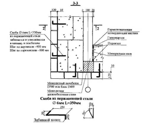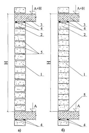 стенах из ячеистобетонных мелких блоков без продольной арматуры в растянутой