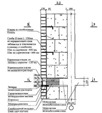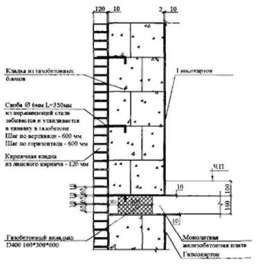 поэтажным опиранием стен из мелких ячеистобетонных блоков при ячеистобетонных