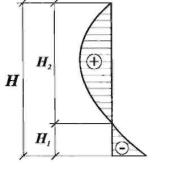 Рисунок 6.14 - Схема знакопеременной эпюры изгибающих моментов по высоте стены 6.5.10. Коэффициент продольного изгиба φс следует определять по высоте части элемента в пределах однозначной эпюры изгибающего момента при отношениях или гибкостях
