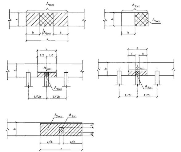Аlос2 - расчетная площадь смятия, определяемая по рисунку 6.15. В расчетную площадь А1ос2 включается участок, симметричный по отношению к площади смятия. При этом должны выполняться следующие условия: - при местной нагрузке по всей ширине стены в расчетную площадь включается участок длиной не более толщины стены в каждую сторону от границы местной нагрузки (рисунок 6.15 а); - при местной краевой нагрузке по всей ширине стены расчетная площадь A1ос2 равна площади смятия (рисунок 6.15 б) при отсутствии косвенного армирования и А1ос2 при наличии оного; - при местной нагрузке в местах опирания концов прогонов и балок в расчетную площадь включается участок шириной, равной глубине заделки прогона или балки, и длиной не более расстояния между серединами пролетов, примыкающих к балке (рисунок 6.15 в); - если расстояние между балками (шаг балок) превышает двойную ширину стены, длина расчетной площади определяется как сумма ширины балки и удвоенной ширины элемента (рисунок 6.15 г); - при местной нагрузке, приложенной на части длины и ширины стены, расчетная площадь принимается согласно рисунку 6.15 д. При наличии нескольких нагрузок указанного типа расчетные площади ограничиваются линиями, проходящими через середину расстояний между точками приложения двух соседних нагрузок. - при местной нагрузке от балок, прогонов, перемычек и других элементов, работающих на изгиб, учитываемая в расчете глубина опоры при определении А1ос1 и А1ос2 принимается не более 200 мм при отсутствии косвенного (поперечного) армирования кладки и не более 300 мм при наличии косвенного армирования кладки величиной не менее 0,2 %. 6.5.17. Если прочность кладки на сосредоточенные нагрузки, рассчитанная по формуле (6.7), недостаточна, то возможно ее повышение (но не более чем на 50 %) путем устройства распределительных бетонных плит (подушек), которые должны иметь толщину не менее 60 мм и класс бетона по прочности на сжатие не менее В10 с косвенным армированием не менее 0,3 %. 6.5.18. Глубина опирания балок и плит на стены из ячеистобетонных камней не должна быть менее 120 мм. 6.5.19. Под опорными участками элементов, передающих местные нагрузки на кладку, следует предусматривать слой раствора толщиной не более 15 мм, что должно быть указано в проекте. 6.5.20. Заделка балок в газобетонную кладку с восприятием опорного изгибающего момента (защемление) запрещается. 6.5.21. В любом случае величина сосредоточенной нагрузки на газобетонную кладку не должна превышать 30 кН от одной балки. Рисунок 6.15 - Расчетные схемы для местного сжатия 6.6. Деформационные швы6.6.1. Деформационные швы в стенах из ячеистых бетонов предусматриваются в целях устранения или уменьшения отрицательного влияния температурных и усадочных деформаций, осадок фундаментов, природных воздействий (ураганы, тектонические выбросы, наводнения), подземных выработок. 6.6.2. Температурно-усадочные швы устраиваются в местах возможной концентрации температурных и усадочных деформаций, которые могут вызвать в конструкциях недопустимые по условиям эксплуатации и долговечности разрывы, трещины, а также перекосы и сдвиги кладки. 6.6.3. Расстояние между температурно-усадочными швами следует определять расчетом в соответствии с указаниями [5] (приложение 11). 6.6.4. Максимальное расстояние между температурно-усадочными швами кладки из ячеистобетонных мелких блоков (кам
