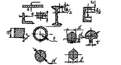 4. Общие требования к выбору марок сталей.4.1. Для изготовления, ремонта и реконструкции несущих сварных стальных конструкций грузоподъемных машин, эксплуатируемых в районах с температурой окружающего воздуха: - от плюс 40 до минус 40°С (исполнение У) и от плюс 45 до минус 10°С (тропическое исполнение Т) должны применяться стали, приведенные в табл. 1 Для металлических конструкций стреловых кранов исполнения У, изготовленных из сталей по табл. 1, разрешается их нахождение в нерабочем состоянии до минус 50°С; - от плюс 40 до минус 60°С (северное исполнение ХЛ) должны применяться стали, приведенные в табл. 2. 4.2.Применение выбранной марки стали должно подтверждаться аттестованной по РД 03-615-03 технологией сварки. 4.3.Стали, приведенные в таблице 1, могут быть использованы также для изготовления вспомогательных элементов кранов обычного и тропического исполнений, а стали по таблице 2 для изготовления вспомогательных элементов - для элементов крана в исполнении «ХЛ». Для изготовления, ремонта и реконструкции вспомогательных узлов (лестницы, перила, обшивки кабин, защитных кожухов вращающихся деталей и др.) рекомендуются стали, приведенные в таблице 3. 4.4. При выборе сталей для конкретных температурных интервалов эксплуатации необходимо учитывать толщину металлопроката (t, a, S) и труб, а также толщину свариваемой кромки поковки или литой заготовки (S, d). При этом под толщиной проката и труб понимается: - для листа и гнутого профиля - толщина «t», - для угловой стали - толщина полки «t», - для швеллеров и двутавровых балок - средняя толщина полки «t», - для труб - толщина стенки «t», - для сортового проката: круглых прутков - диаметром - диаметр «d» ≤ 25, d1 ≤ 50 мм квадрата - сторона квадрата «а» ≤ 25, а1 ≤ 50 мм шестигранника - величина «S» ≤ 25, S1 ≤ 60 мм