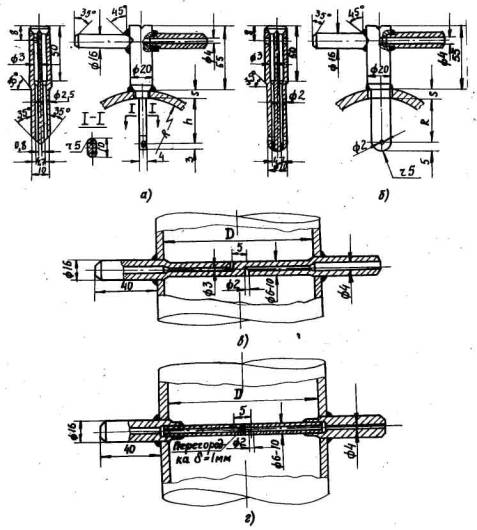 Рис. 3. Конструкции напорных трубок для измерения скоростей циркуляции воды