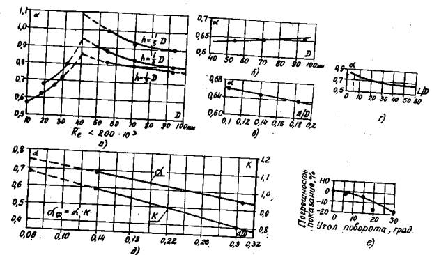 Рис. 4. Значения коэффициентов расхода стержневых и цилиндрических трубок 5.5.3. В качестве первичных преобразователей (датчиков) при измерении расходов применяются дифманометры (ГОСТ 22520-85). От измерительного устройства к датчику прокладывают соединительные линии в соответствии с правилами РД 50-213-80. 5.6. Отбор сигналов по статическому давлению производится через отверстия (штуцеры) в трубопроводах или коллекторах поверхности нагрева вне зоны обогрева. Отборные устройства следует устанавливать в местах, защищенных от динамического воздействия рабочего потока. В качестве датчиков используются манометры с электрическим выходом (ГОСТ 22520-85). 5.7. Измерение перепада давлений производится с помощью отборов статического давления в начале и в конце измеряемого участка контура, которые выполняются по типу измерения давления. В качестве датчиков применяются дифманометры. 5.8. Тип и класс точности датчиков и вторичных приборов, применяемых при измерении расхода, перепада давлений и давления, приводятся в табл. 2.