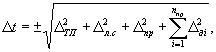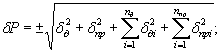 hТ = rq×rr×hk, где F - внутреннее поперечное сечение трубопровода, м2; tнас - температура насыщения по давлению среды на выходе контура, °С; a - коэффициент расхода измерительной трубки; DРизм - перепад давлений на измерительной трубке, кгс/м2; v - удельный объем среды, м3/кг; Fэл - внутреннее поперечное сечение элемента, м2; iвх, iвых - энтальпия среды на входе и на выходе из контура, кДж/кг (ккал/кг), берется по термодинамическим таблицам, i =f(t,P), давление берется на входе и на выходе контура; hk - коэффициент конструктивной нетождественности элемента (отдельной трубы), берется по проектным данным согласно [1]. Пояснения к остальным буквенным обозначениям см. пп. 1.1.7 и 1.1.8. 9.2. Погрешности определения показателей по результатам измерений определяются следующим образом: d(wr) = d(G); D(tвх) = D(t); D(tвых) = D(t); D(tэл) = D(t);