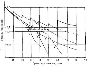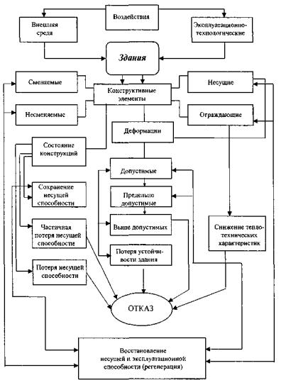 ЖИЛЫХ ЗДАНИЙ Москва 2008 Рекомендовано Учебно-методическим объединением вузов РФ в качестве учебного пособия для студентов, обучающихся по направлению 270100 «Строительство» Москва 2008 Содержание Приведены характеристики жилого фонда различных периодов постройки, основные виды дефектов и их влияния на эксплуатационную надежность зданий. Приведены теоретические исследования математических методов оценки надежности и долговечности зданий, практические рекомендации инженерных методов диагностики технического состояния зданий. Разработаны основные положения по технологии и организации производства работ по ликвидации дефектов, способствующих продлению жизненного цикла зданий. Приведены методы технологического проектирования на основе комплексной механизации технологических процессов, оценка и влияние организационно-технологической надежности строительного производства в зависимости от ресурсообеспечения, методов, технологий и конструктивных решений. Даны современные технологии производства работ по повышению и восстановлению эксплуатационной надежности жилых зданий: усилению фундаментов, повышению несущей способности основных конструкций стен, колонн, перекрытий, технологии замены перекрытий. Рассмотрены вопросы повышения энергоэффективности зданий путем утепления ограждающих конструкций, применения энергоэффективных светопрозрачных конструкций, снижения теплопотерь за счет вентиляционных эффектов и др. Приведены технологические особенности производства работ по утеплению стен с защитой штукатурными покрытиями и вентилируемых фасадов. Рассмотрены общие принципы повышения энергоэффективности управляемых режимов теплоснабжения жилых домов. Книга рассчитана на специалистов жилищно-коммунального хозяйства, проектировщиков, работников высшей школы, студентов и аспирантов. Рецензенты: Головнев С.Г. - член-корр. РААСН, д-р техн. наук, проф., заведующий кафедрой «Технология строительного производства» Южно-Уральского государственного университета; Олейник П.П. - д-р техн. наук, проф., заведующий кафедрой «Организация строительства» Московского государственного строительного университета. ПРЕДИСЛОВИЕНа протяжении многих лет отсутствовало планомерное восстановление и повышение эксплуатационных характеристик жилого фонда и инженерной инфраструктуры городов. Из общего объема 2809,8 млн. м2, что составляет около 30 % всего воспроизводимого имущества РФ, более 50 млн. м2 составляет ветхий и аварийный фонд с износом 70 %, 11 % жилых зданий нуждается в капитальном ремонте, а 9 % - в реконструкции. Значительную часть жилищного фонда (около 250 млн. м2) представляют дома первых массовых серий, возведенные в период 50-60-х годов. На сегодня они морально устарели, имеют ряд конструктивных недостатков, не отвечают действующим нормам по площади квартир, кухонь, подсобных помещений. Энергозатраты таких домов превышают современные нормативы в 2,5-3 раза. Эксплуатационные расходы на предоставляемые услуги по отоплению, водоснабжению и энергоснабжению неоправданно велики. Состояние жилого фонда таково, что задержка с проведением восстановительных работ на 5-10 лет может привести к необходимости сноса домов в объеме более 20 % существующего жилого фонда. Многие из крупнопанельных, блочных и кирпичных зданий высотой 9-12 этаже