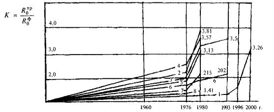 4 - системы с вентилируемым фасадом; 5 - предельно допустимое