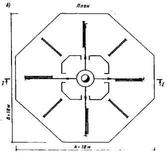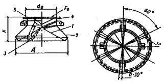 ЭКСПЕРИМЕНТАЛЬНЫЙ ИНСТИТУТ ИНЖЕНЕРНОГО ОБОРУДОВАНИЯ Рекомендации Москва Стройиздат 1988 Приведены основные положения по воздухораспределению, содержащие классификацию струй; рекомендации по выбору схем воздухораспределения и конструктивные мероприятия; по расчету и проектированию распределения воздуха наклонными и вертикальными компактными, а также коническими и веерными струями. Даны примеры расчета распределения воздуха, программа расчета на ЭВМ. Содержат технические данные, аэродинамические, тепловые и акустические характеристики воздухораспределителей для общественных зданий. Для специалистов проектных и научно-исследовательских организаций, занимающихся вопросами распределения воздуха в общественных зданиях. СОДЕРЖАНИЕ ПРЕДИСЛОВИЕВоздухораспределение в большинстве помещений общественного назначения (школы; торговые магазины и предприятия общественного питания; учреждения отдыха, туризма и лечения; клубы и др.) практически не изучено. Расчетом в основном определяется количество и температура воздуха, подаваемого в помещение, а размеры, число и расположение приточных и вытяжных устройств принимаются интуитивно. Это часто приводит к возникновению дискомфортных зон в помещениях и, как следствие, к ухудшению самочувствия находящихся в них людей, а иногда и к выключению вентиляции. Выпускаемые отечественной промышленностью воздухораспределители в основном предназначены для промышленных зданий. Они имеют плохие акустические характеристики и не отвечают архитектурным требованиям, предъявляемым к общественным зданиям. Выпускаются регулируемые и нерегулируемые решетки, скорость подачи воздуха через которые, исходя из акустических требований не должна превышать 2 - 3 м/с. Кроме того, по отдельным заказам изготавливаются пяти- и шестидиффузорные анемостаты, подающие воздух со скоростью не более 5 м/с и разностью температур не более 5 - 6°С. Настоящие рекомендации содержат аэродинамические, тепловые и акустические характеристики новых воздухораспределителей, позволяющих подавать воздух с повышенной скоростью 8 - 10 м/с и разностью температур 10-12°С. Применение этих воздухораспределителей позволит сократить число и уменьшить их размеры, а в ряде случаев уменьшить количество приточного воздуха и расход тепла и холода на его нагревание и охлаждение. Даны примеры рас чета распределения воздуха. Рекомендации разработаны ЦНИИЭП инженерного оборудования (канд. техн. наук М.Д. Тарнопольский, инженеры М.Н. Салихова, А.А. Салихов, Т.Е. Горовая, В.И. Барсуков) совместно с ВНИИГС (канд. техн. наук И.Л. Ганес, инж, И.Л. Лещинская), МНИИТЭП (кандидаты техн. наук М.Л. Поз, Р.Д. Кац), НИИ сантехники (кандидаты техн. наук В.И. Сасин, В.Е. Карпис), НИИСФ (канд. техн. наук Э.А. Лесков, инж. М.Ю. Лешко), МИСИ им. В.В. Куйбышева (канд. техн. наук Н.А. Гельман, инж. Т.С. Симонова). 1. ОБЩИЕ ПОЛОЖЕНИЯ1.1. Под вентиляционными струями понимаются турбулентные струи, которые получаются при принудительном истечении воздуха из отверстия и распространяются в помещении в направлении истечения, испытывая заметное влияние взаимодействия, неизотермичности и стеснения. 1.2. В Рекомендациях рассматривается распределение воздуха наклонными и вертикальными компактными, а также плоскими, коническими и веерными струями. Под наклонными понимаются компактные струи, 