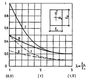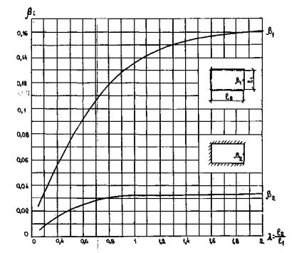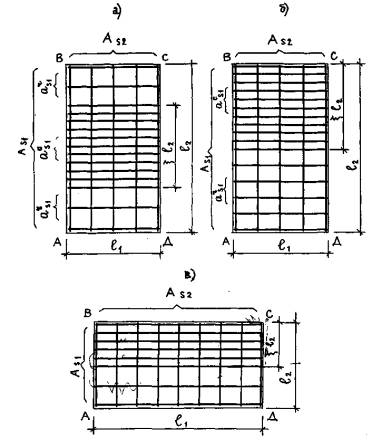 где As1 и As2 ~ суммарные площади арматуры, направленной соответственно параллельно и перпендикулярно к свободному краю; l1 и l2 - расчетный пролет, соответственно параллельный и перпендикулярный свободному краю;