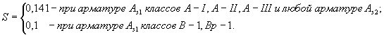 где α1(2) - коэффициенты, принимаемые по графикам на рис. 8; М1(2) - суммарные моменты у свободного края плиты на ширину b - 1 м (см); индексы 1 и 2 соответствуют схемам работы до и после защемления концов плиты в платформенных стыках. Прогиб определяется по формулам и графикам п.п. 3.3; 3.4, ширина раскрытия трещин - п. 3.5. 4. ОСОБЕННОСТИ РАСЧЕТА ПРЕДВАРИТЕЛЬНО НАПРЯЖЕННЫХ ПЛИТ4.1. Расчетные сопротивления напрягаемой арматуры умножаются на коэффициент γs6 определяемый по формулам [20]. При подборе сечений в формуле (27) [20] принимается ξ/ξR ≈ 0,5. При наличии в одном направлении напрягаемой и ненапрягаемой арматуры при подборе сечений вместо Rsp,i и Rsi используются эквивалентные сопротивления арматуры Rsэi, определяемые по формуле