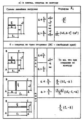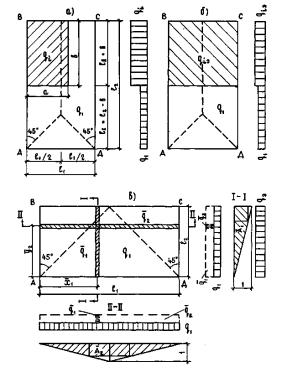 распределенные по площади нагрузки; Рис. 6. Схемы определения эквивалентных нагрузок в плитах, опертых по трем сторонам, при расположении нагрузок большей интенсивности вблизи свободного края ВС или перпендикулярно ему: а - при опирании по одной короткой и двум длинным сторонам; б - то же, по одной длинной и двум коротким сторонам 3. РАСЧЕТ ПЛИТ ПО ПРЕДЕЛЬНЫМ СОСТОЯНИЯМ ВТОРОЙ ГРУППЫСочетания нагрузок При платформенных стыках перекрытий со стенами междуэтажные перекрытия рассчитываются с учетом защемления их опорных концов. Отсюда принимаются следующие сочетания нормативных нагрузок: для оценки трещинообразования